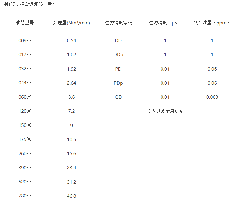阿特拉斯精密過濾器濾芯采用優(yōu)質(zhì)過濾材料和不銹鋼骨架制作,具有過濾效率高、耐腐蝕、強(qiáng)度高、氣流阻力低、使用壽命長等特點(diǎn)??諝鈮嚎s后,空氣中的顆粒和水分含量將會(huì)增加.混合在一起形成廣泛損害的磨損性混合物