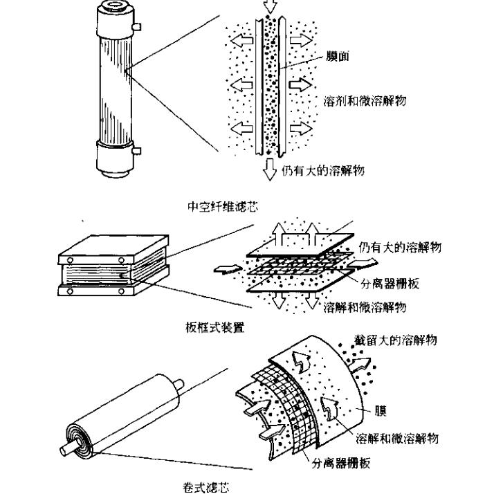 不同種類的膜組件:平板、管狀和毛細(xì)管.后來(lái)發(fā)展起來(lái)的有中空纖維形式膜組件.