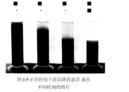 隨著濃度的增大,沉降行為會(huì)發(fā)生變化:迅速經(jīng)過(guò)一個(gè)產(chǎn)生顆粒群、并以渾濁團(tuán)形式沉降的過(guò)渡區(qū),然后是顆粒-起沉積的干涉沉降.