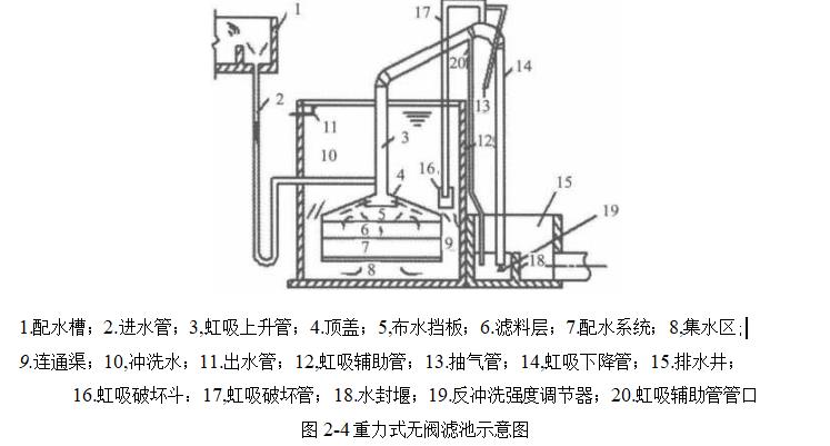 一般快濾池都有復(fù)雜的管道系統(tǒng),并設(shè)有各種控制閥門,操作步驟相當(dāng)復(fù)雜,同時(shí)也增加了建造費(fèi)用.無閥濾池是利用水力學(xué)原理,通過進(jìn)出水的壓差自動(dòng)控制虹吸產(chǎn)生和破壞,實(shí)現(xiàn)自動(dòng)運(yùn)行的濾池.