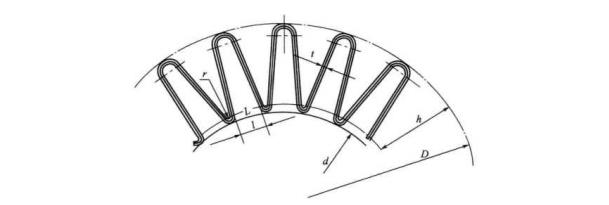 無論油濾芯或空氣濾芯,凡過濾材料選用紙張式且需要打褶的濾芯,它們的設(shè)計和制造方法都大同小異。本節(jié)提供的設(shè)計及計算方法來源于HB 6779—93,只針對液壓濾芯.
