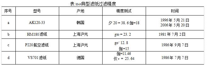 棉木紙漿濾紙過濾精度最高也在lOμm左右。很少高于8μm表11-3列出國內(nèi)外部分典型型號濾紙過濾精度測試結(jié)果。